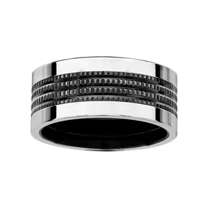 Alliance en acier brillant avec 4 filets en PVD noir crantés au milieu