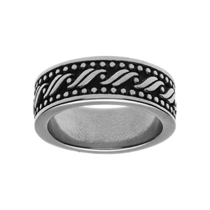 Alliance En Acier Large Patinée Avec Motif Picot