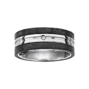 Bague En Acier Avec Bandes De Carbone Aux Bords Et 1 Oxyde Blanc