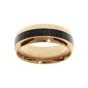 Bague En Acier Et PVD Jaune Avec Ruban Carbone Largeur 8mm