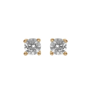 Boucles D’oreille En Plaqué Or Oxyde Blanc Serti 4 Griffes 3mm Et Fermoir Poussette