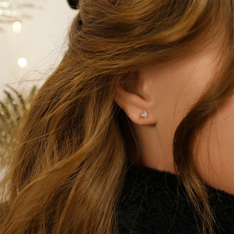 Boucles D’oreille En Plaqué Or Oxyde Blanc Serti 4 Griffes 4mm Et Fermoir Poussette