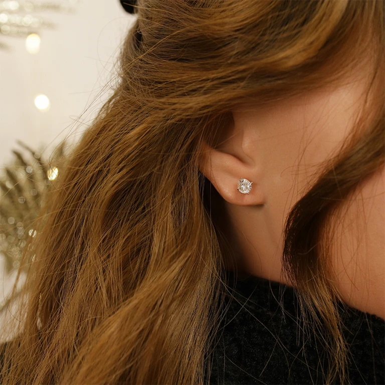 Boucles D’oreille En Plaqué Or Oxyde Blanc Serti 4 Griffes 5mm Et Fermoir Poussette