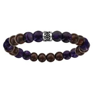 Bracelet Acier Elastique Perles Bois Et Quartz Violet