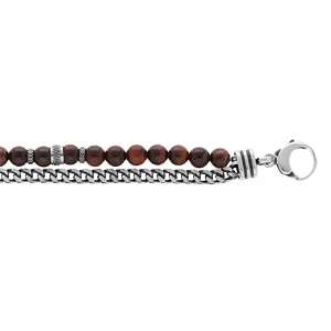 Bracelet en acier boules Oeil de tigre rouge véritable et 1 rang chainage longueur 20+3cm