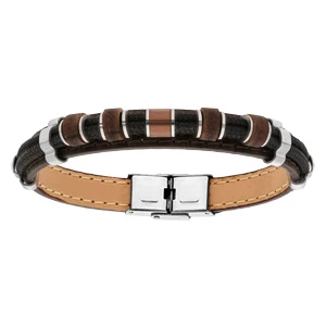 Bracelet en acier et cuir marron avec perles en bois naturel – 21cm réglable