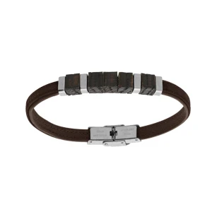 Bracelet en acier et cuir marron et bois de chêne 20cm
