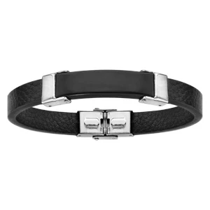 Bracelet en acier et cuir noir plaque à graver en PVD noir 21cm réglable