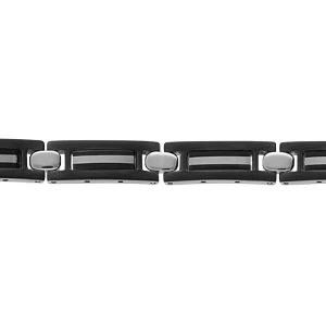 Bracelet En Acier Et PVD Noir 18+3cm Réglable Double Fermoir