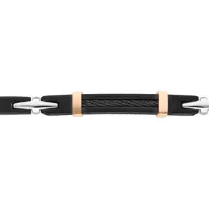 Bracelet en acier et PVD noir avec plaque et câble noir 21,5cm réglable