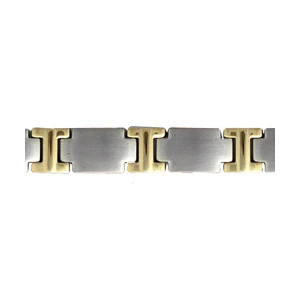 Bracelet en acier satiné et PVD jaune alternance de maillons lisses en forme de croix longue et petits maillons en H jaune – longueur 21,5cm ajustable