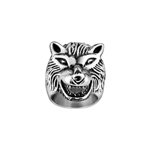 Chevalière en acier avec tête de loup patinée