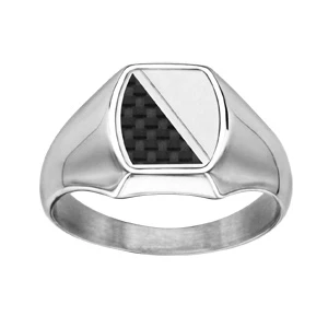 Chevalière En Acier Plateau Grand Tonneau Avec Carbone