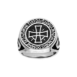 Chevalière En Acier Plateau Rond Avec Croix Des Templiers Fond Noir