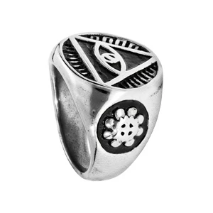 Chevalière En Acier Plateau Rond Motif Illuminati