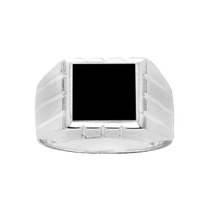 Chevalière En Argent Plateau Carré En Onyx Synthétique Et Godrons Sur Les Côtés