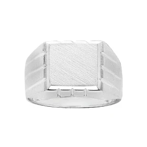 Chevalière En Argent Plateau Carré Et Godrons Sur Les Côtés