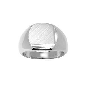 Chevalière en argent plateau ovale brossé en biais et strié sur 2 bords consécutifs