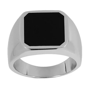 Chevalière En Argent Rhodié Plateau Carré En Onyx Synthétique Et Chanfreins Dans Les Angles