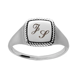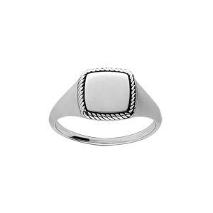 Chevalière en Argent rhodié plateau carré et contour perlé