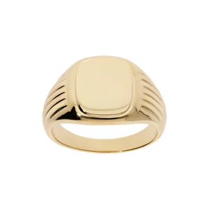 Chevalière en plaqué or plateau rectangulaire avec cadre et godrons sur les côtés