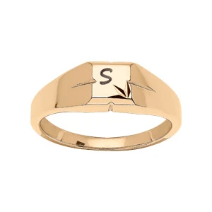 Chevalière en Vermeil petit plateau carré ciselé en étoile dans angle
