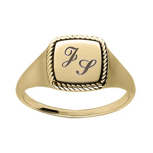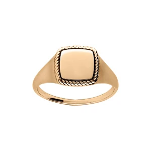 Chevalière En Vermeil Plateau Carré Au Contour Perlé