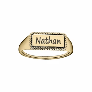 Chevalière En Vermeil Plateau Rectangulaire Contour Perlé