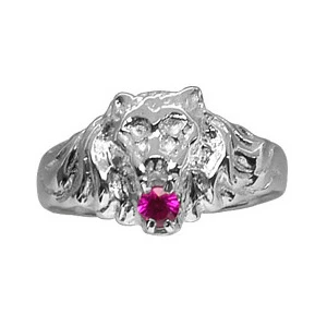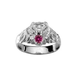 Chevalière lion en argent petit modèle avec oxyde rouge entre les dents