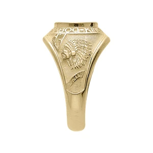 Chevalière universitaire américaine en Vermeil « Indienne » avec plateau en onyx synthétique