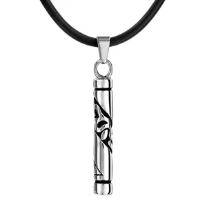 Collier cordon en caoutchouc noir avec pendentif en acier cylindre avec motif tribal noir