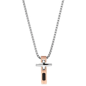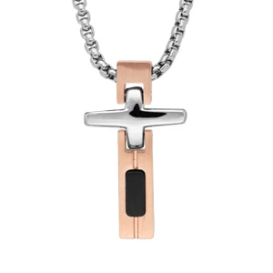 Collier en acier avec pendentif croix PVD noir et rose 55cm