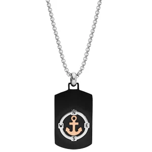 Collier En Acier Avec Pendentif Rectangulaire Noir Et Ancre Marine Rose 50cm Réglable 45