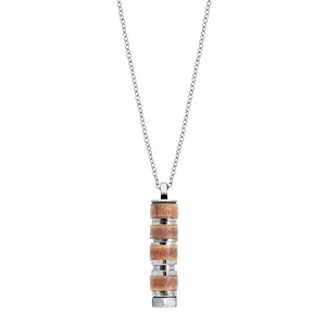 Collier En Acier Avec Pendentif Tube Motifs écrous Et Bois Naturel 50+5cm
