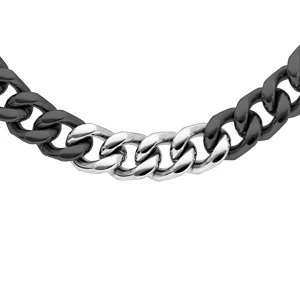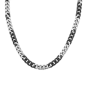 Collier En Acier Bicolore Noir Maille Gourmette 8mm Longueur 50cm