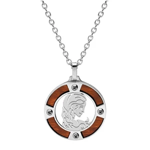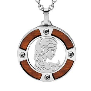 Collier en acier chaîne avec pendentif rond zodiaque Vierge aspect bois noir et vis cruciforme 50+5cm