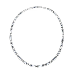 Collier En Acier Et Câble Bleu 49+4cm Réglable Double Fermoir