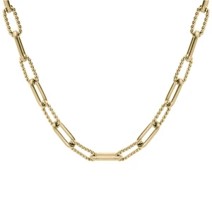 Collier en acier et PVD jaune maille rectangulaire et torsadée modèle fin 48+1cm