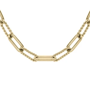 Collier En Acier Et PVD Jaune Maille Rectangulaire Et Torsadée Modèle Fin 48+1cm