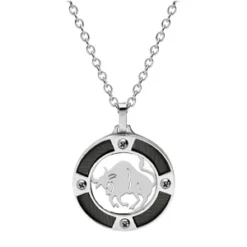 Collier En Acier Chaîne Avec Pendentif Rectangulaire Zodiaque Bélier 2 Bandes Carbone 50+5cm