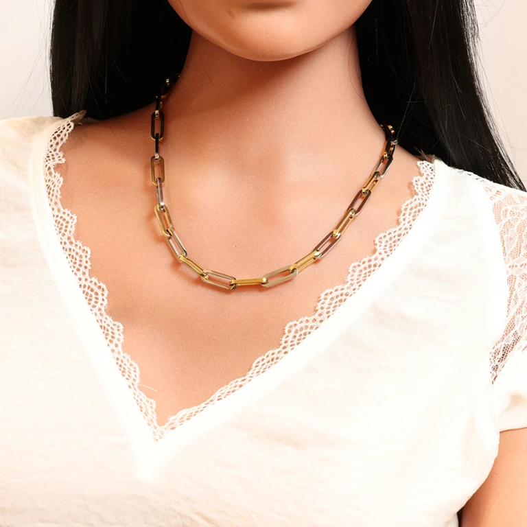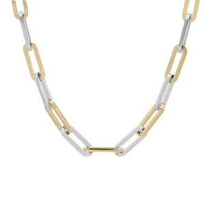 Collier En Acier Grande Maille Rectangulaire Bicolore Pvd Jaune 47+1cm
