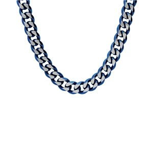 Collier en acier maille gourmette 10mm PVD brossé aspect patiné chanfrein bleu 55cm