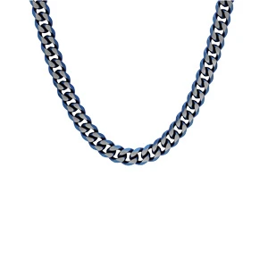 Collier en acier maille gourmette largeur 8mm avec PVD brossé aspect patiné chanfrein bleu 55cm