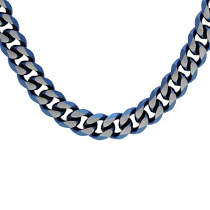 Collier En Acier Maille Gourmette Largeur 8mm Avec PVD Brossé Aspect Patiné Chanfrein Bleu 55cm