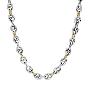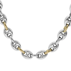 Collier En Acier Maille Grain De Café Bombée Bicolore 54cm