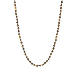 Collier en acier perles Oeil de tigre véritable mat marron 50+5cm