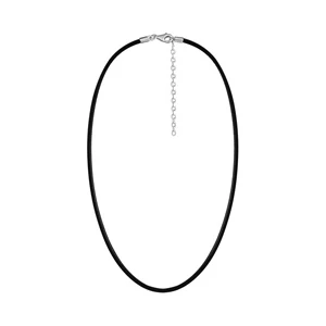 Cordon en cuir noir et fermoir en Argent rhodié – largeur 2mm et longueur 50cm + 5cm de rallonge