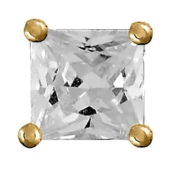 Boucles D’oreilles En Plaqué Or Solitaire Oxyde Carré Blanc Serti 4 Griffes Et Fermoir Poussette