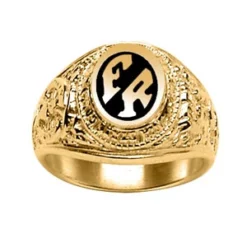 Chevalière Universitaire Américaine En Vermeil « University » Avec Plateau En Onyx Synthétique