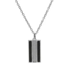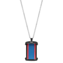Collier En Acier Chaîne Avec Pendentif Rectangulaire Noir Et Bleu Avec2 Bandes Rouge 50+5cm